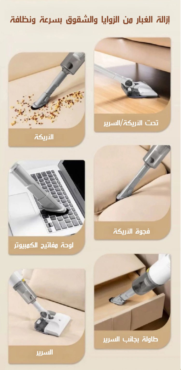 مكنسة كهربائية يدوية لاسلكية تجمع بين وظيفة الشفط والمسح
